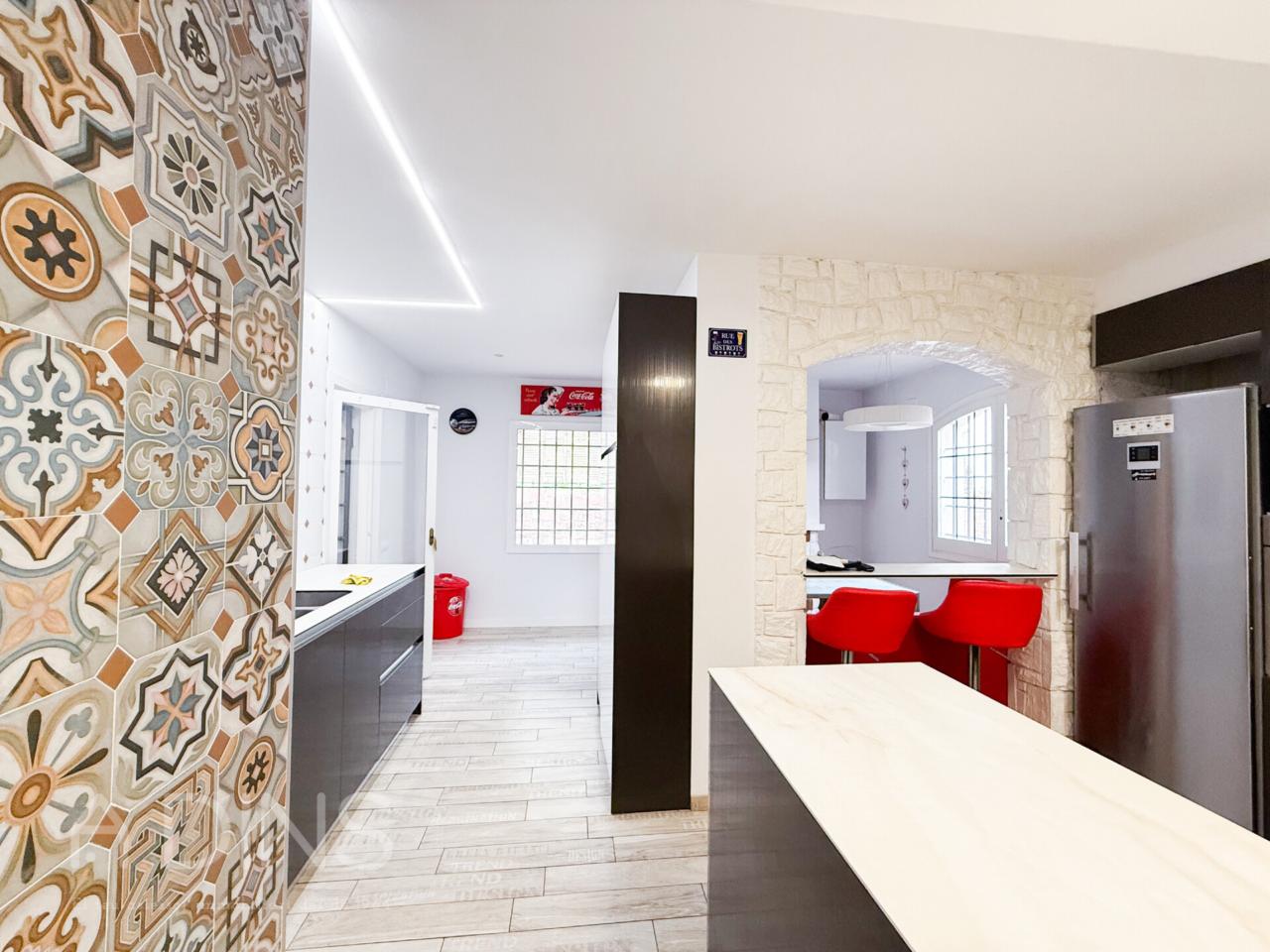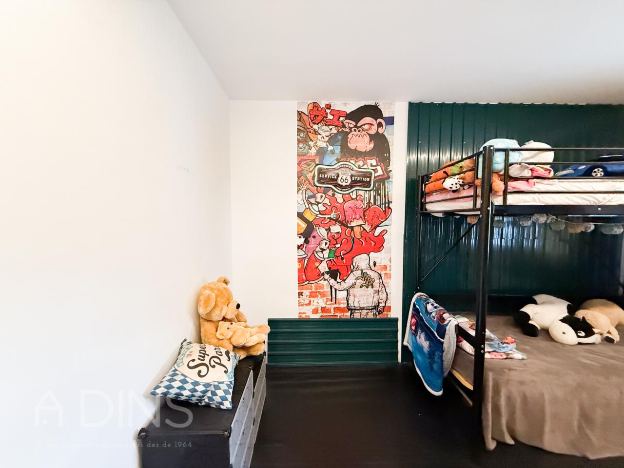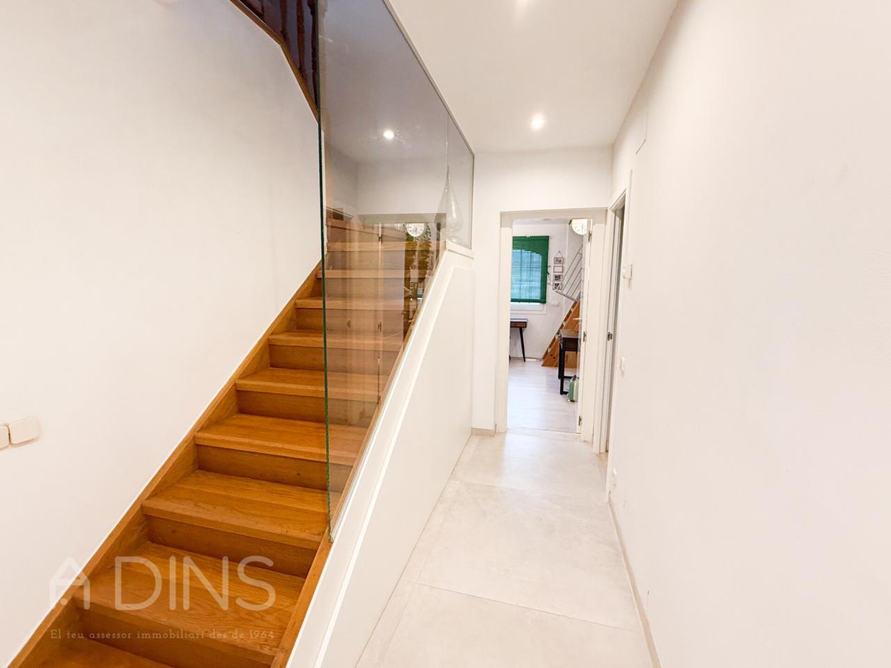 L’habitatge, construït l’any 1989 i parcialment actualitzat el 2024, es distribueix en dues plantes. A la planta principal trobem tres dormitoris (un d’ells tipus suite amb bany privat), un bany complet addicional, una cuina office reformada amb xemeneia i sortida directa al jardí i al menjador d’estiu, un ampli saló-menjador amb molta llum natural i una altra xemeneia, així com un pràctic safareig independent.
