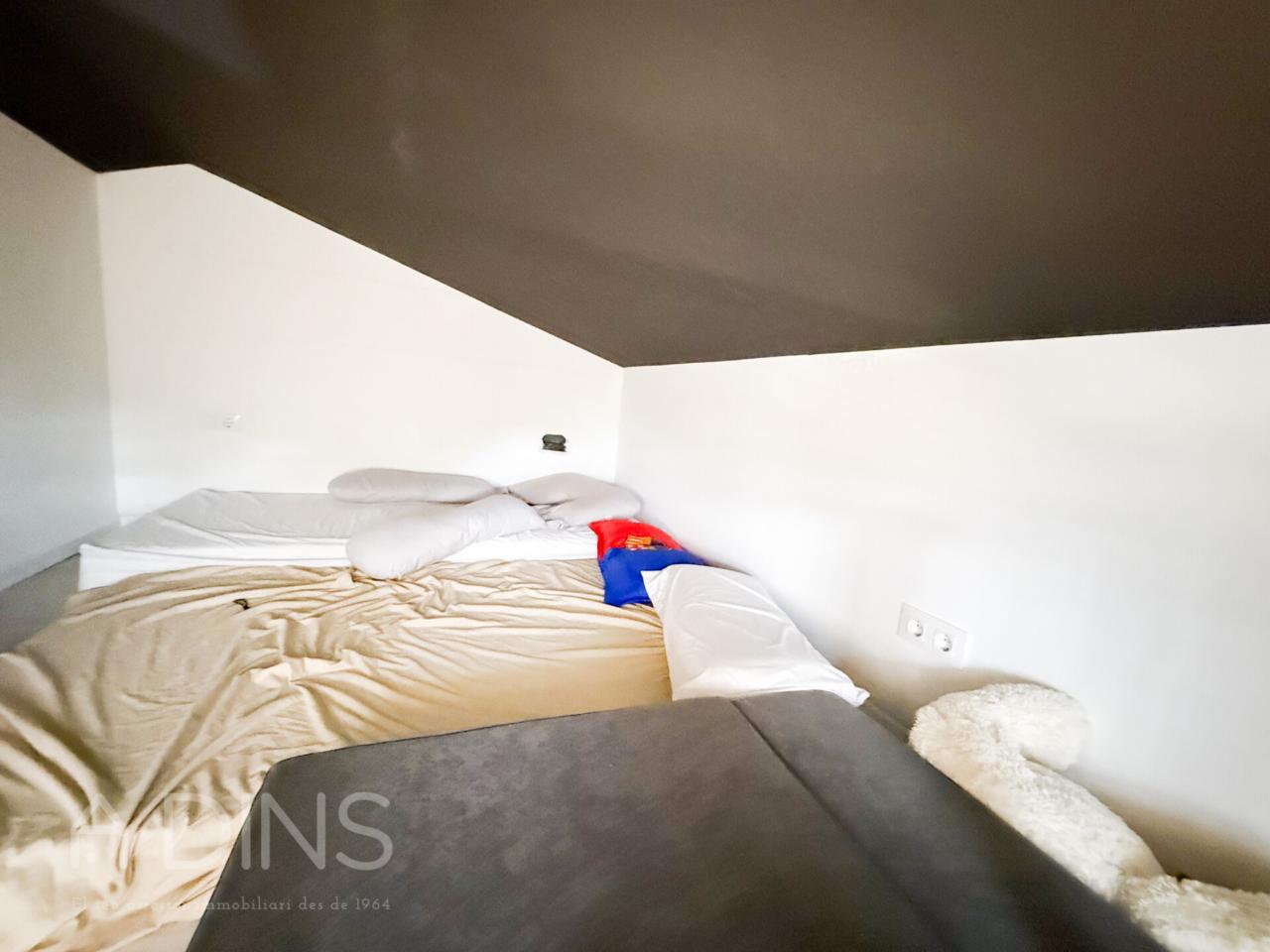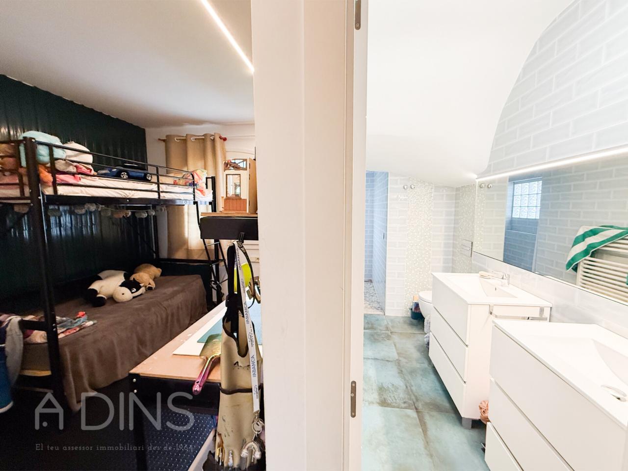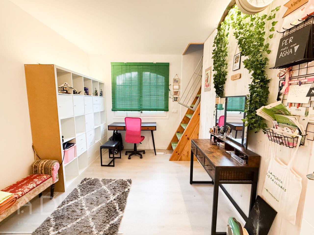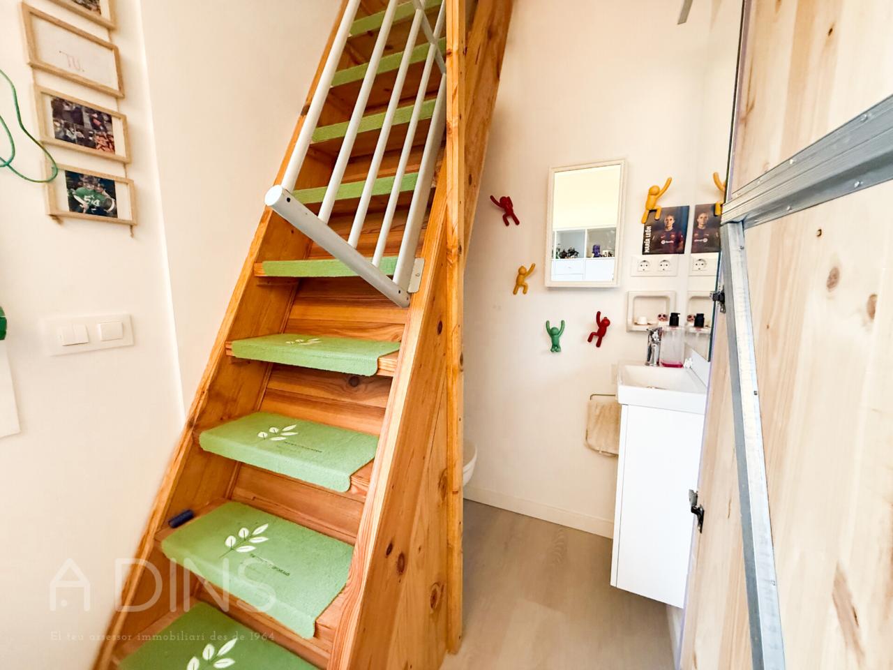 La planta superior acull una bonica zona sota coberta, amb terres i sostres de fusta, que conserva el seu encant original. Aquesta àrea inclou dues habitacions addicionals i un bany complet amb banyera, un espai amb caràcter propi i versatilitat per adaptar-lo a diferents usos com despatx, estudi o zona d’oci.